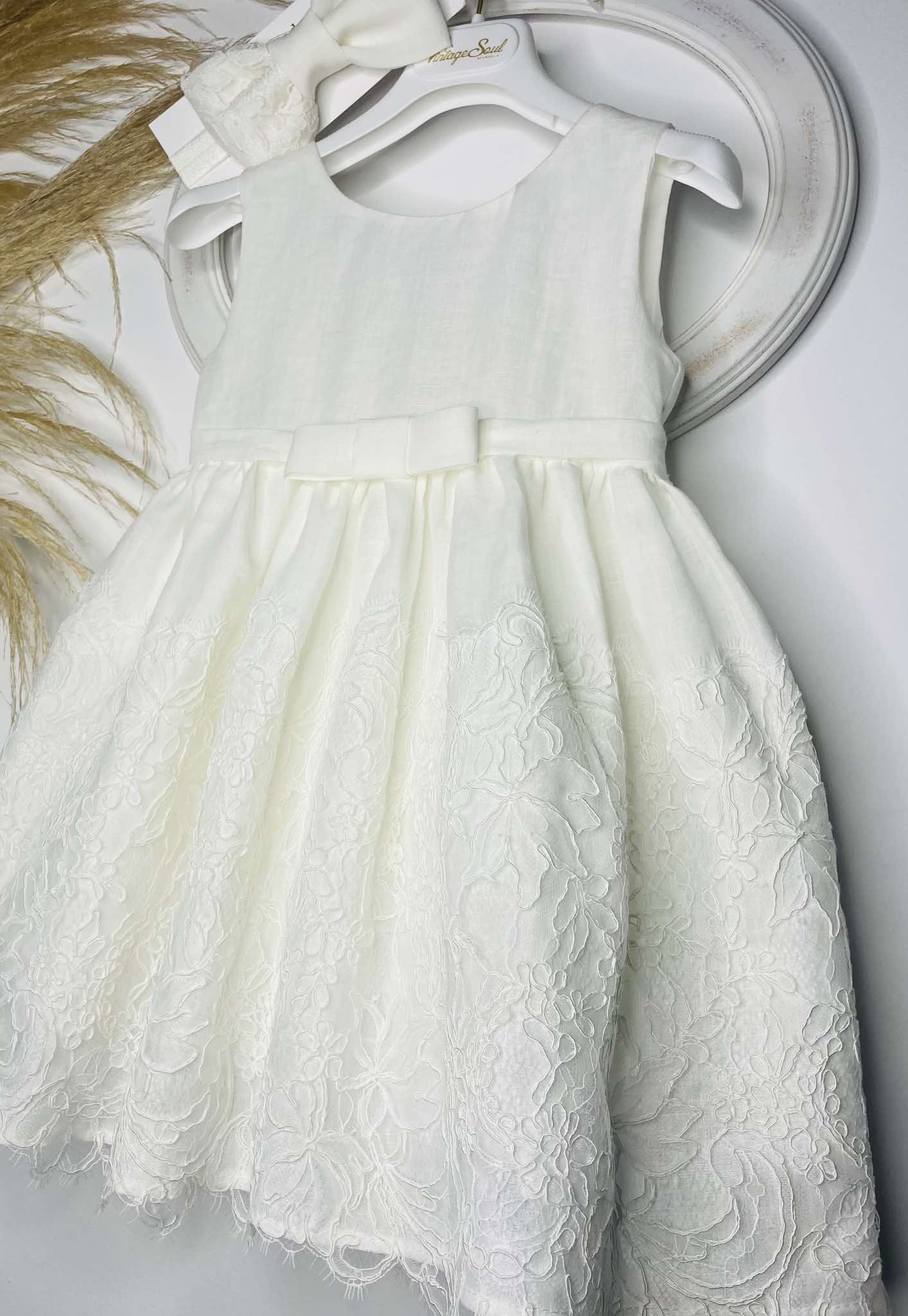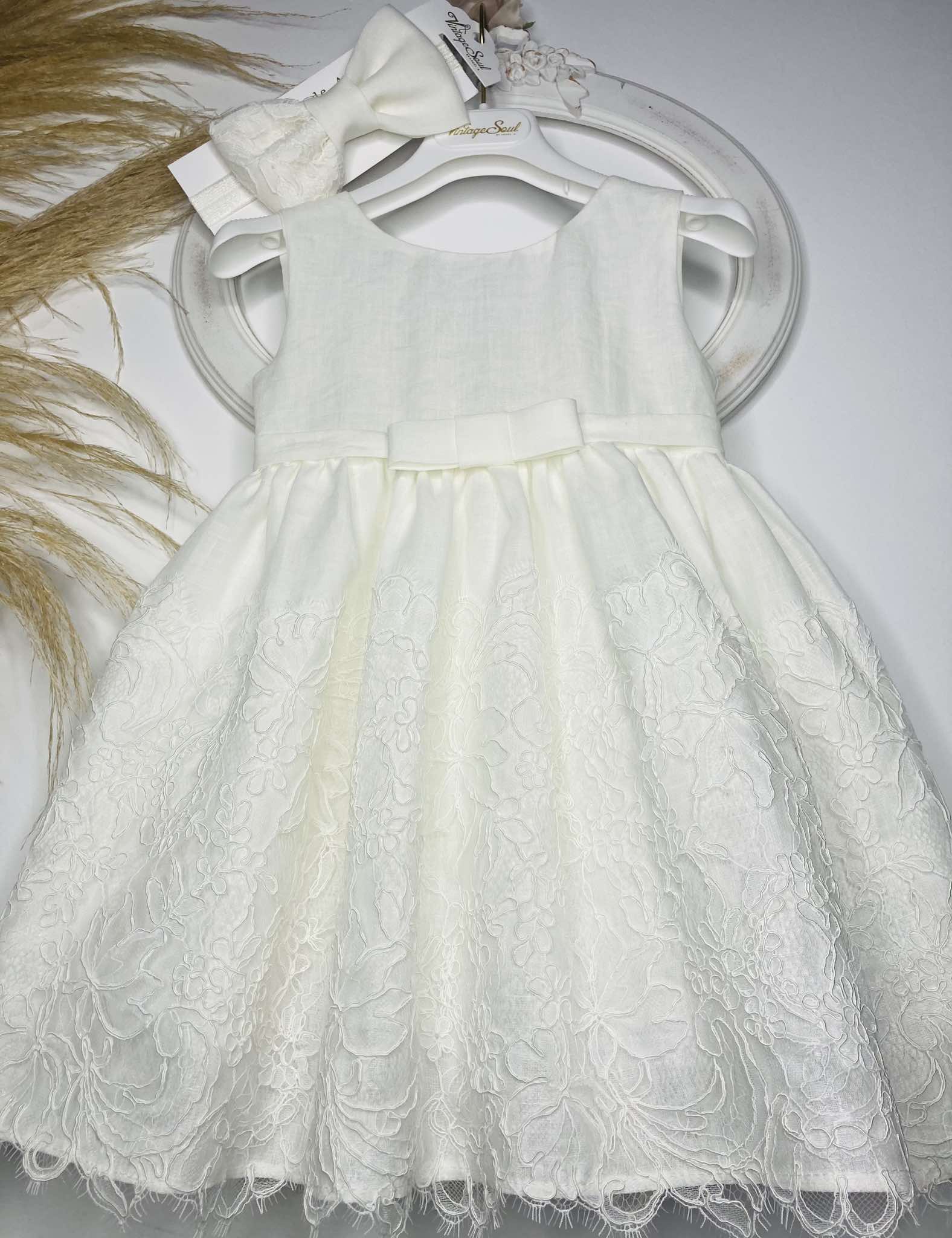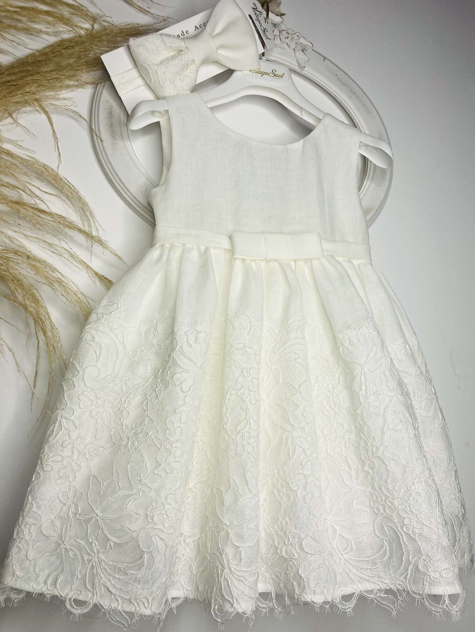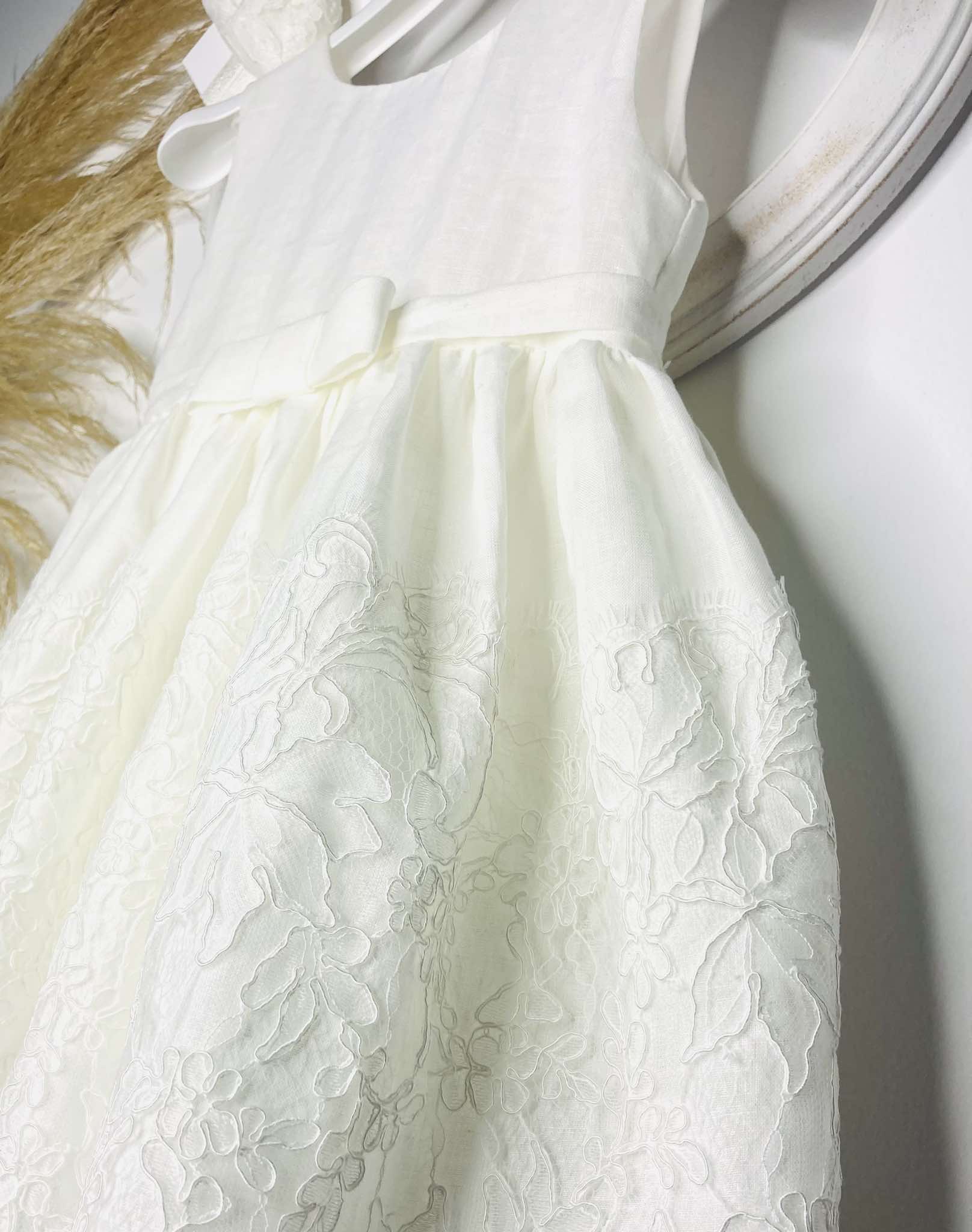 Φόρεμα αμπίρ από υψηλής ποιότητας λινό ντελαβέ , με γαλλική δαντέλα κορδονέ στο τελείωμα της φούστας.